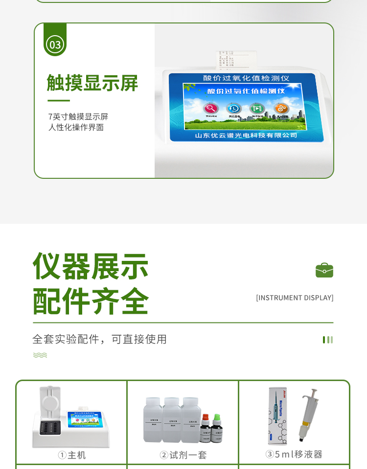 2、显示方式:7英寸液晶触摸屏显示,人性化中文操作界面,读数直观、简单。